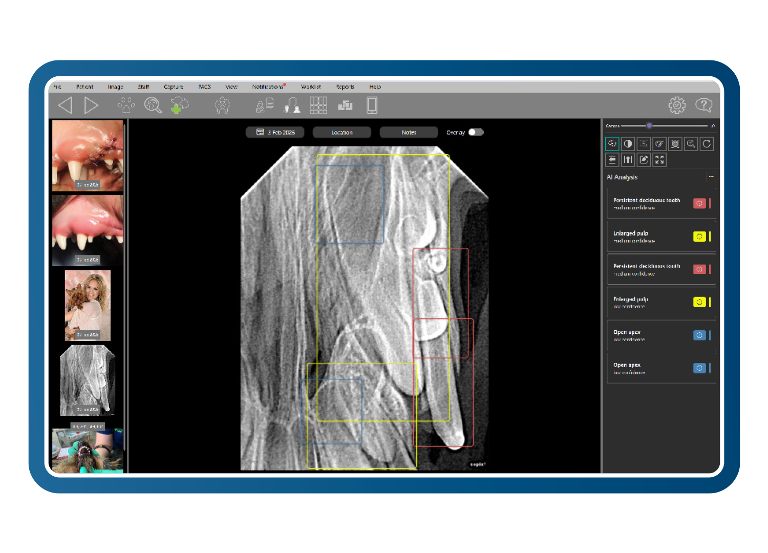 cases from board-certified veterinary dentists, it highlights anomalies in under 0.5 seconds — supporting, not replacing, clinical diagnosis and accelerating confident decision-making.