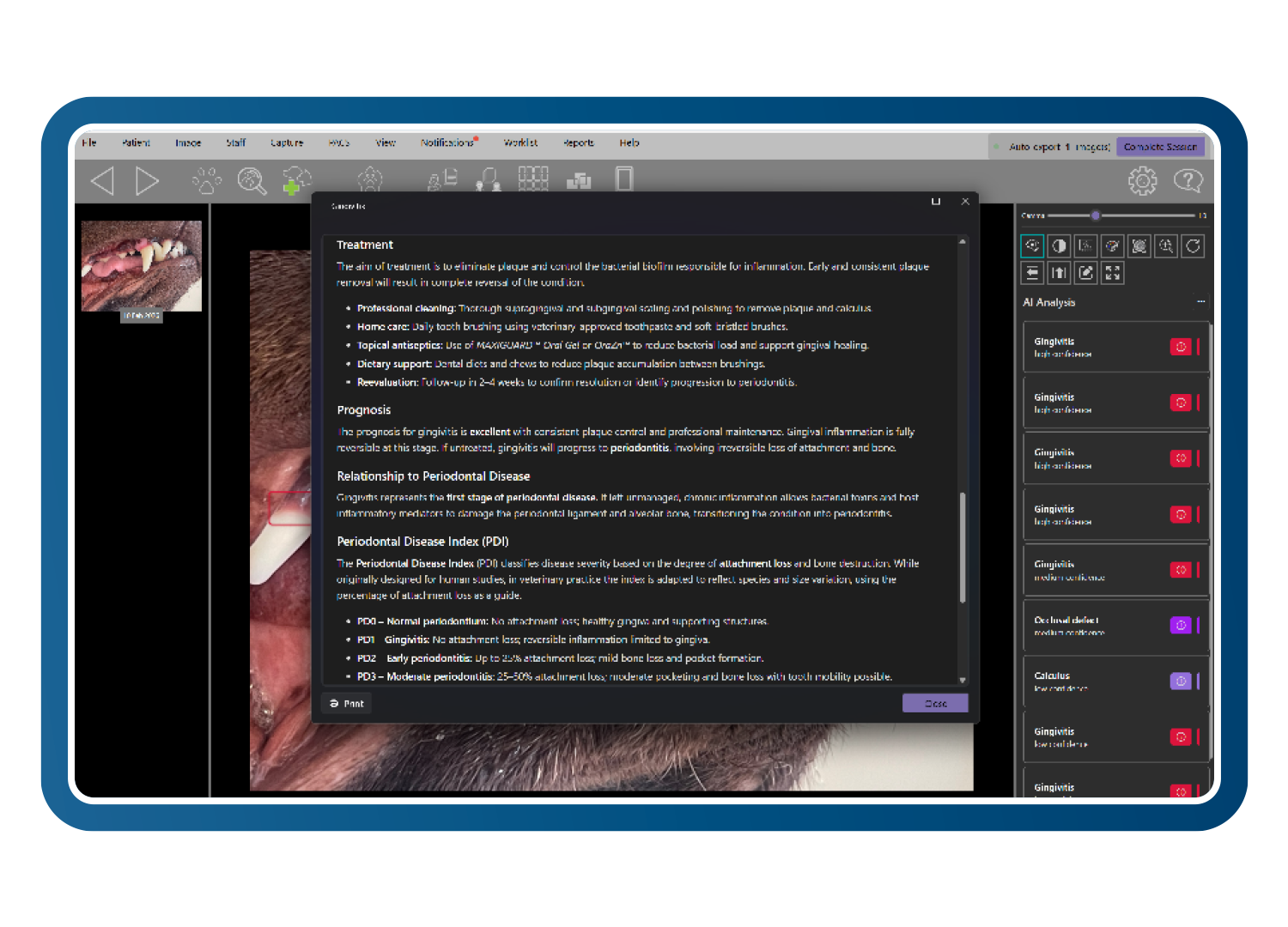 Built for real veterinary workflows, this platform integrates seamlessly with any practice management system or PACS. Use your existing Dental X-Ray hardware, reduce retakes and radiation through advanced imagery, and turn complex dental cases into clear, visual conversations clients understand. Scalable best practice without adding complexity.