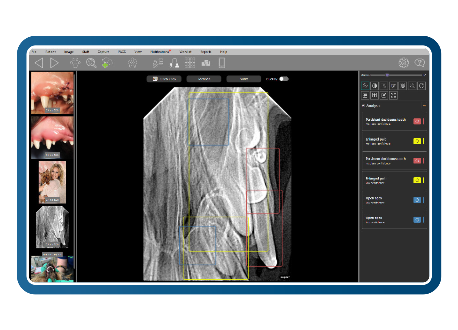 The platform integrates with any practice management system or PACS via API, allowing multi-site groups to standardise dental workflows without replacing core systems. Universal CR/DR compatibility protects legacy hardware investments, while Clarity-assisted imaging and WSAVA- and AAHA-aligned guidance improve consistency, safety, and conversion across sites. Centralised best-practice workflows deliver measurable uplift in quality and revenue without increasing consultation time or operational complexity.
