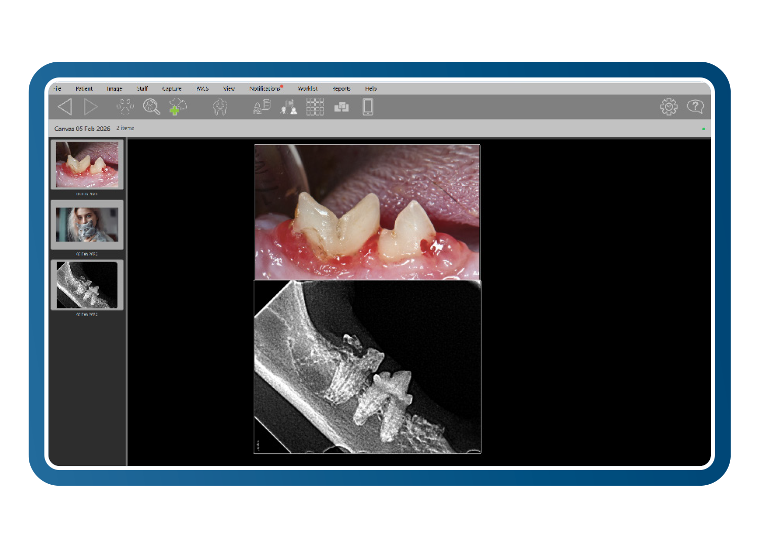 Create clear, complete diagnostic image sets using intuitive full-mouth and free-form layouts for multiple species. Images auto-place correctly, with simple drag-and-drop editing. Combine radiographs and photographs to present a coherent, easy-to-understand diagnostic story.